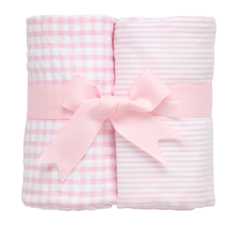 3 Marthas Pink/White Seersucker Stripe Set of Two Burp Cloths