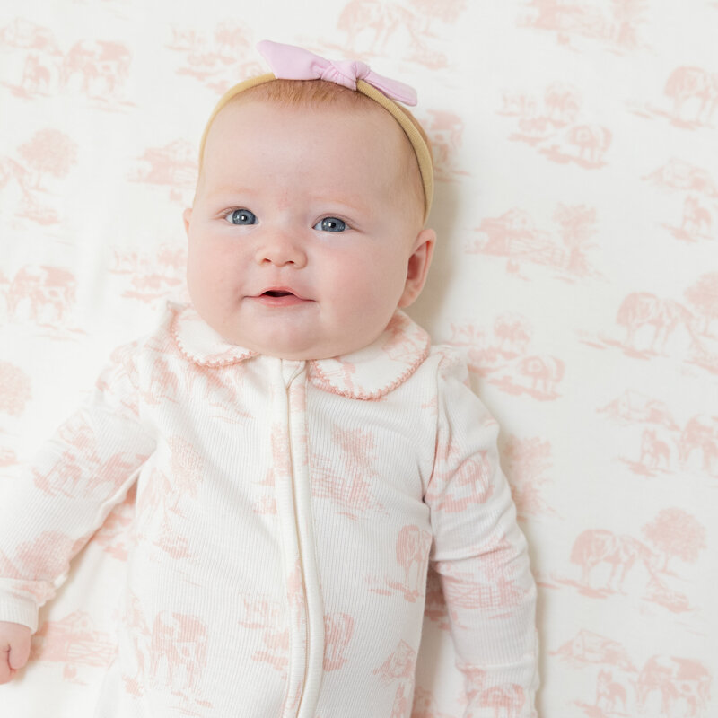 Angel Dear Peter Pan Zipper Footie - Farm Toile Pink