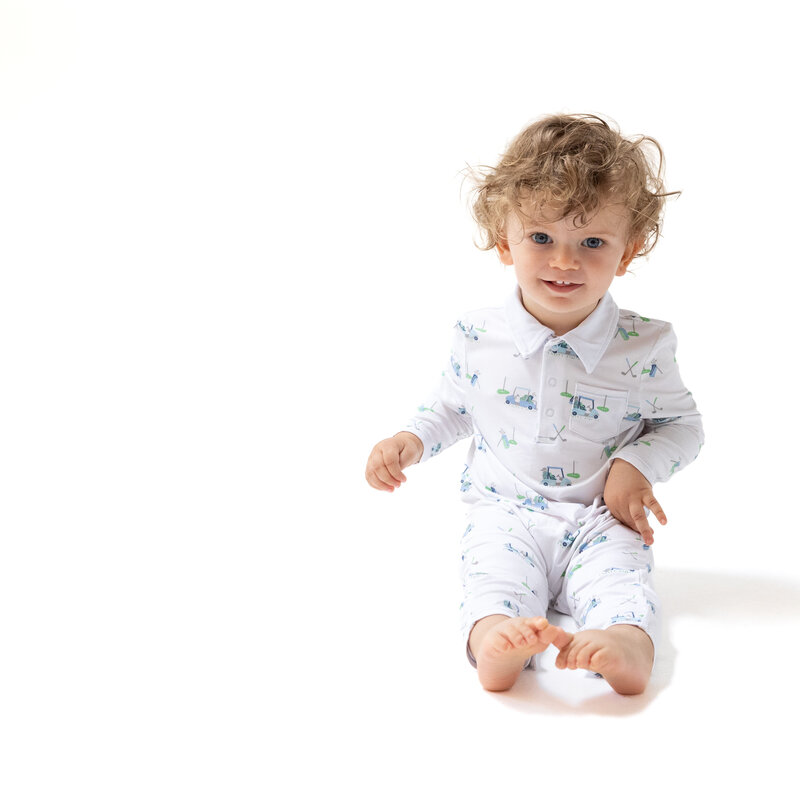 Angel Dear Polo Romper - Baby Golf Carts Blue