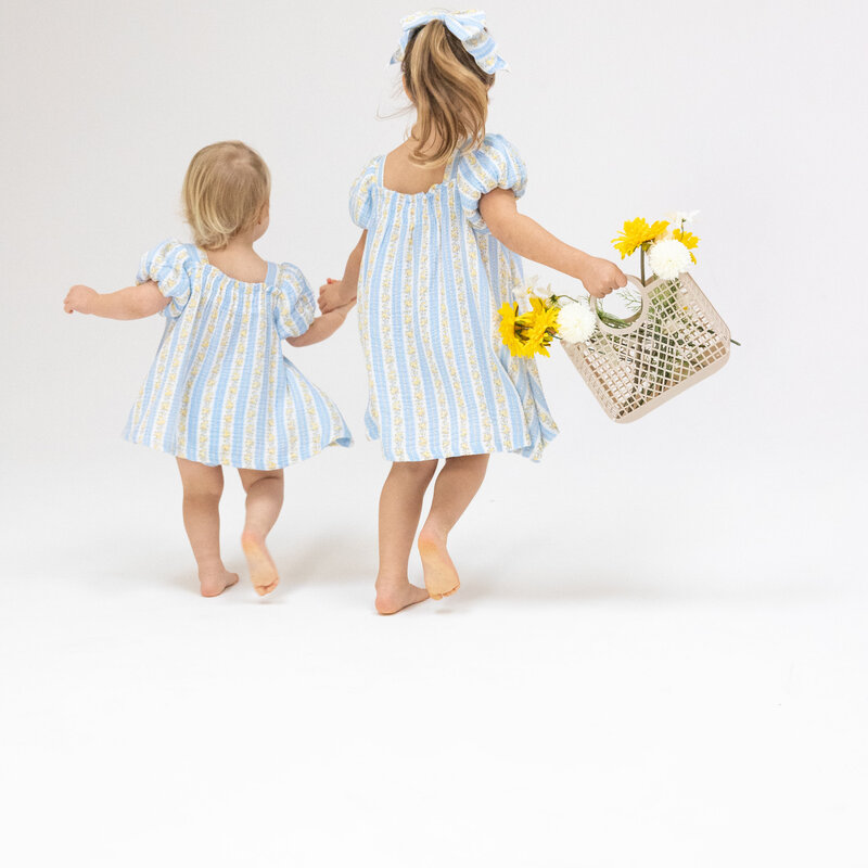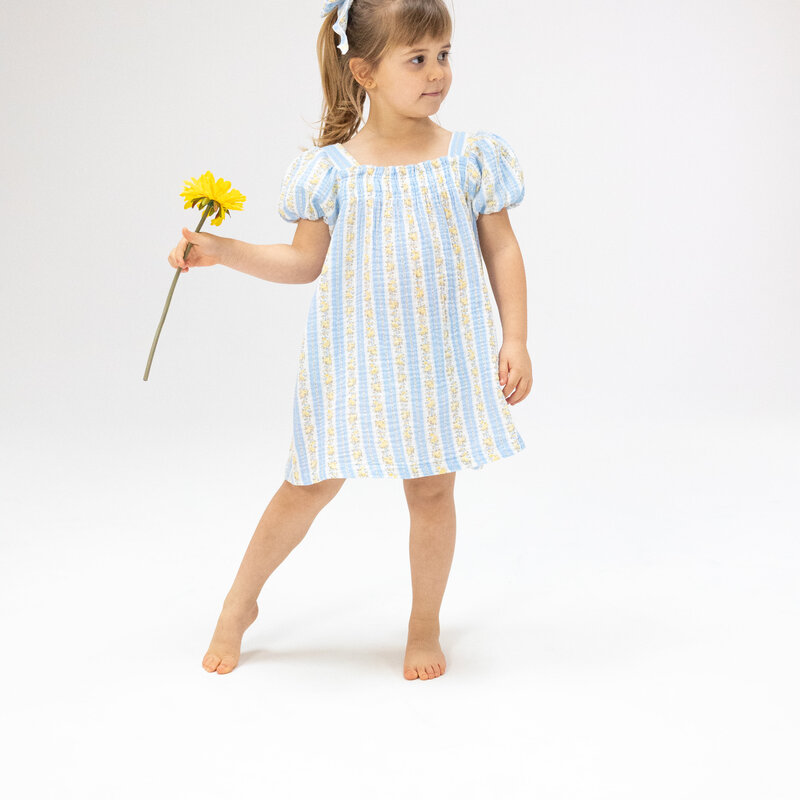 ANGEL DEAR PUFF SLEEVE BABYDOLL DRESS & BLOOMER - ODALYS FLORAL STRIPE