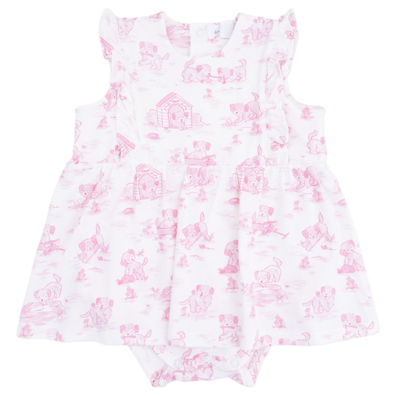 Angel Dear Ruffle Bodysuit Dress - Puppy Toile Pink