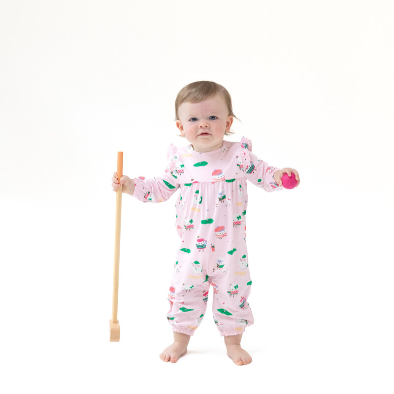 Angel Dear Ruffle Sleeve Romper - Golf Pros Pink