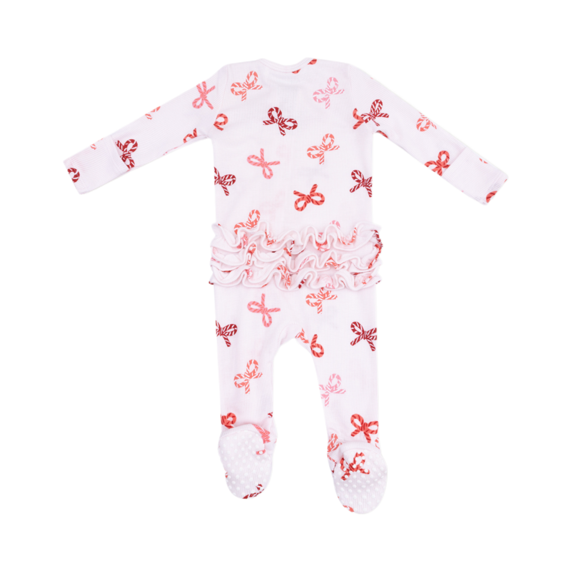 Angel Dear Ruffle Zipper Footie - Candy Cane Bows