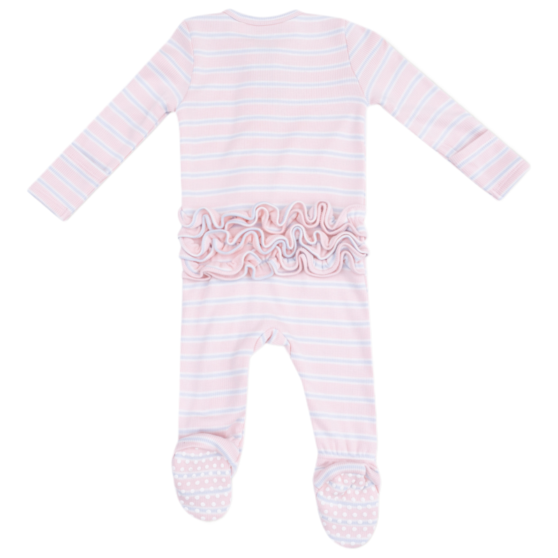 ANGEL DEAR RUFFLE ZIPPER FOOTIE - PINK MULTI STRIPE