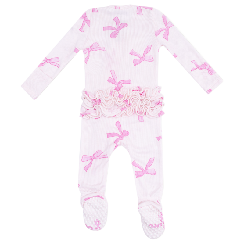 Angel Dear Ruffle Zipper Footie - Pretty Bows