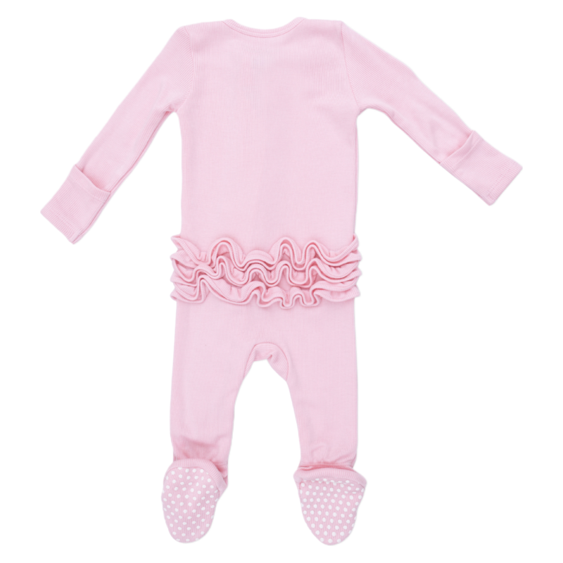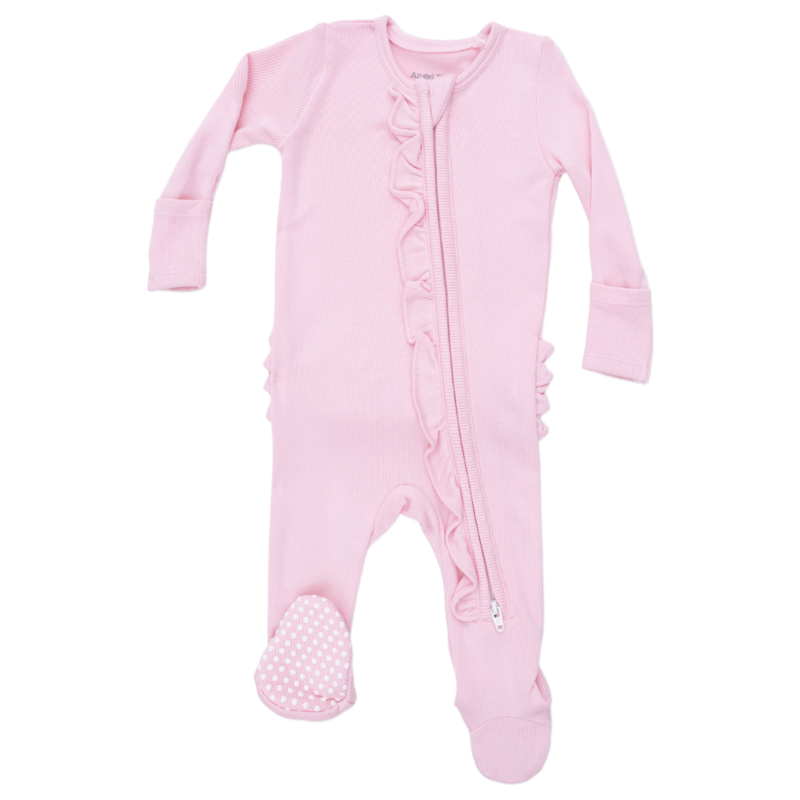 Angel Dear Ruffle Zipper Footie - Solid Romance Rose Rib