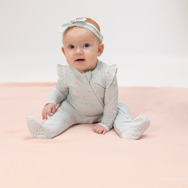 ANGEL DEAR RUFFLE ZIPPER FOOTIE - TINY CHERRY STRIPE