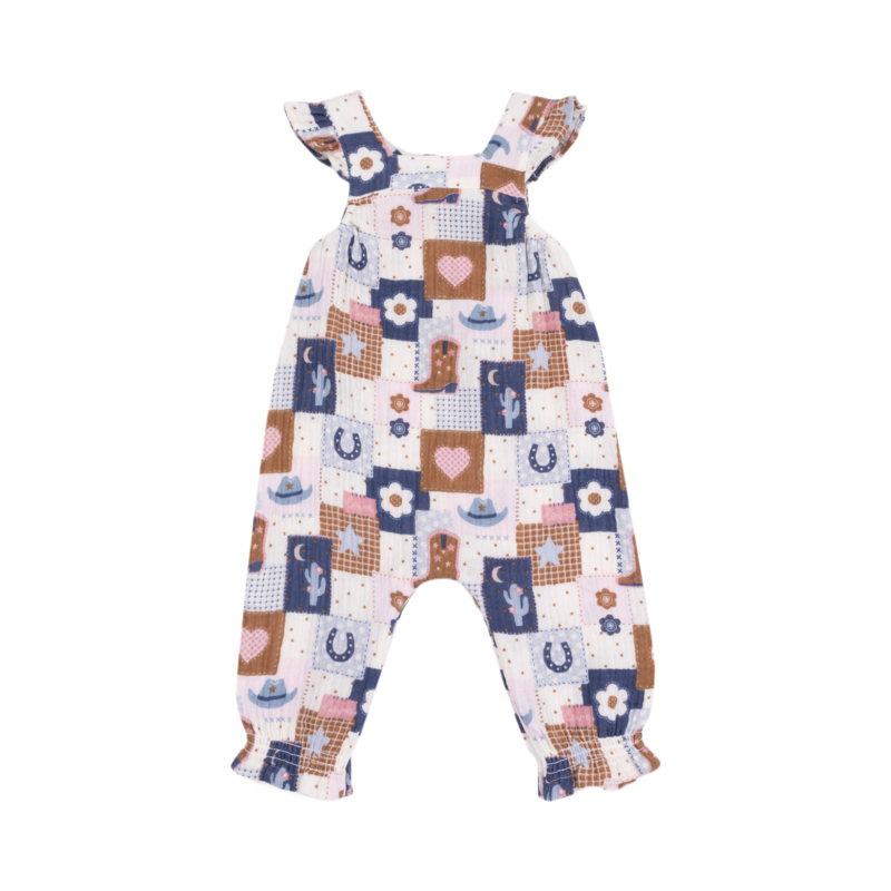 ANGEL DEAR SMOCKED OVERALL & BODYSUIT SET - PATCHWORK COWGIRL