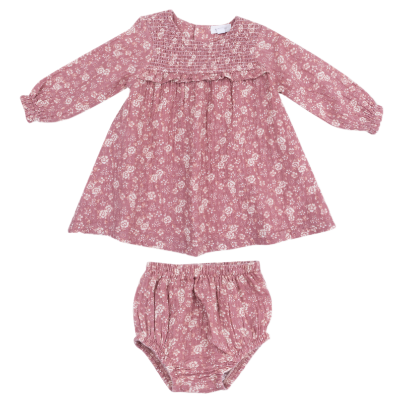 ANGEL DEAR SMOCKED RUFFLE DRESS & DIAPER COVER - BANDANA FLORAL