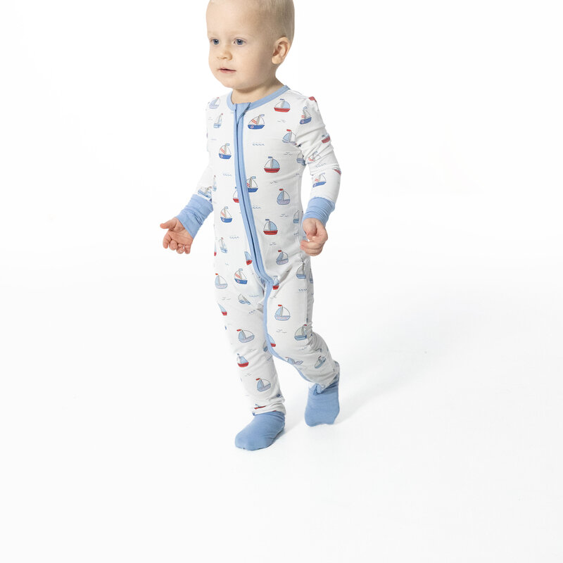 Angel Dear Zipper Romper - Bubbly Sailboats Blue