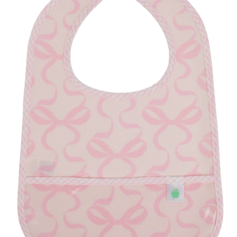 APPLE OF MY ISLA THE WIPE IT BIB - BOWS PINK ON PINK