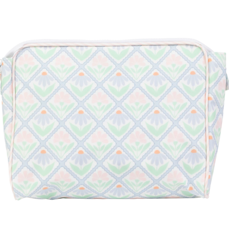 The Go Bag is just that - a bag for your things on the go! Diapers/wipes, makeup, toys, sunscreens, pacifiers, all the things organized to grab and go.