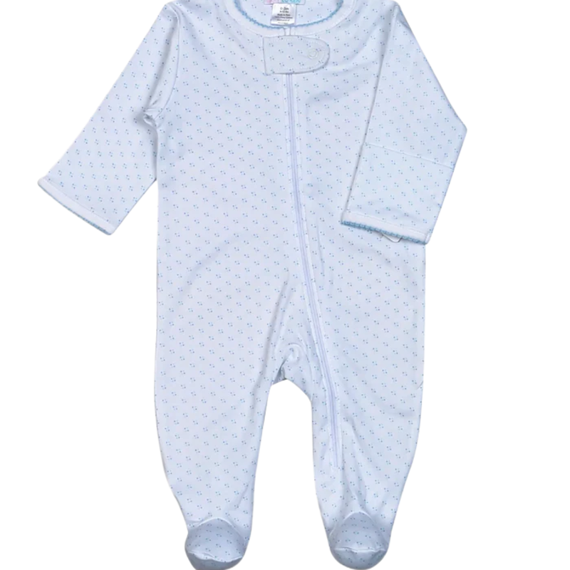 BABY LOREN BLUE TINY DOTS ZIPPER FOOTIE