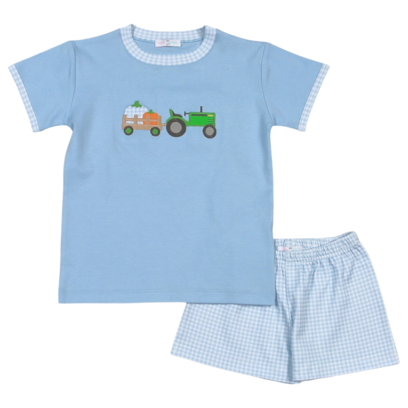 Baby Loren Tractors and Pumpkins Applique Short Set