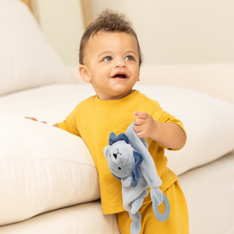 -Cheerful rattling head -Super soft cuddle plush -Textured teething rings to soothe gums -Embroidered details