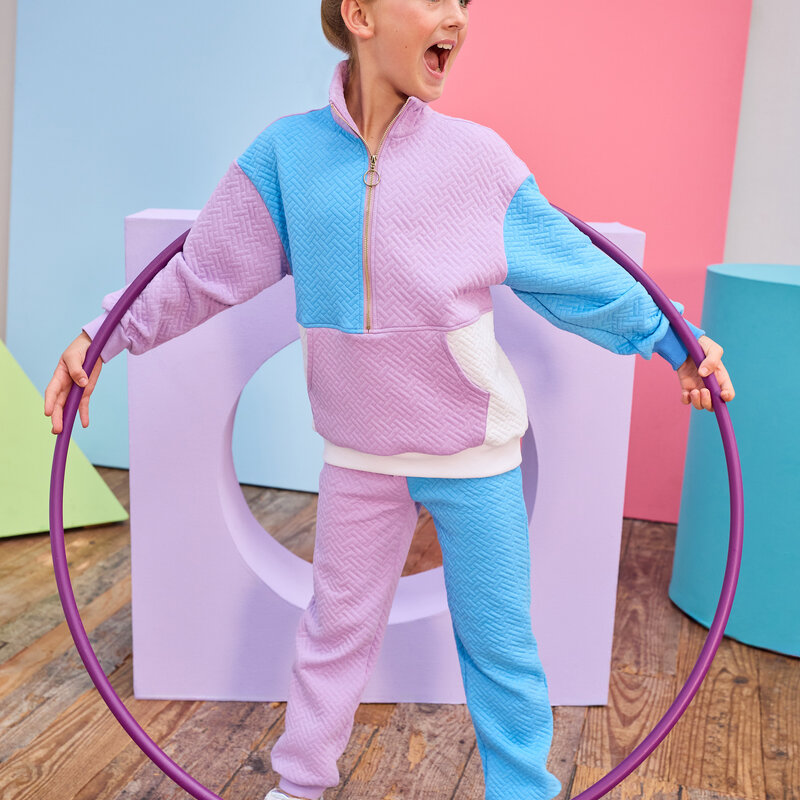 Bisby Lavender & Blue Quilted Trellis Color Block Jogger