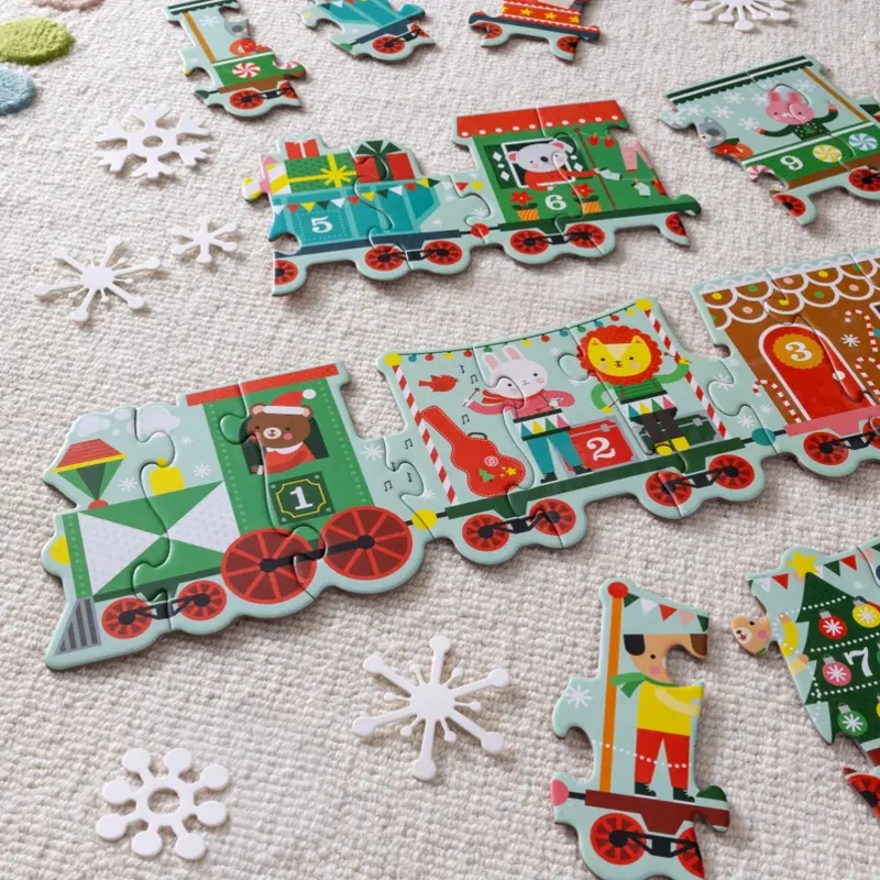 Choo-choo! All aboard the Christmas Train Shaped Floor Puzzle!