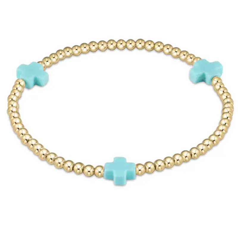 ENEWTON EGIRL SIGNATURE CROSS GOLD PATTERN 3MM BEAD BRACELET - TURQUOISE