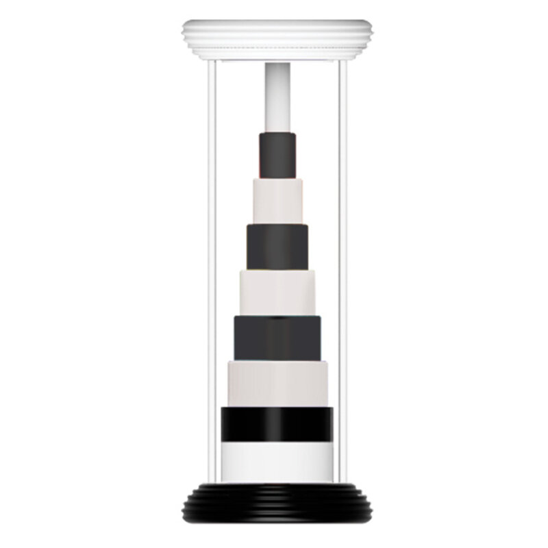 Sensory toy with a stack of rings inside that flip from black-and-white to rainbow