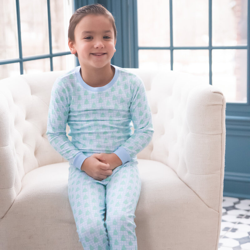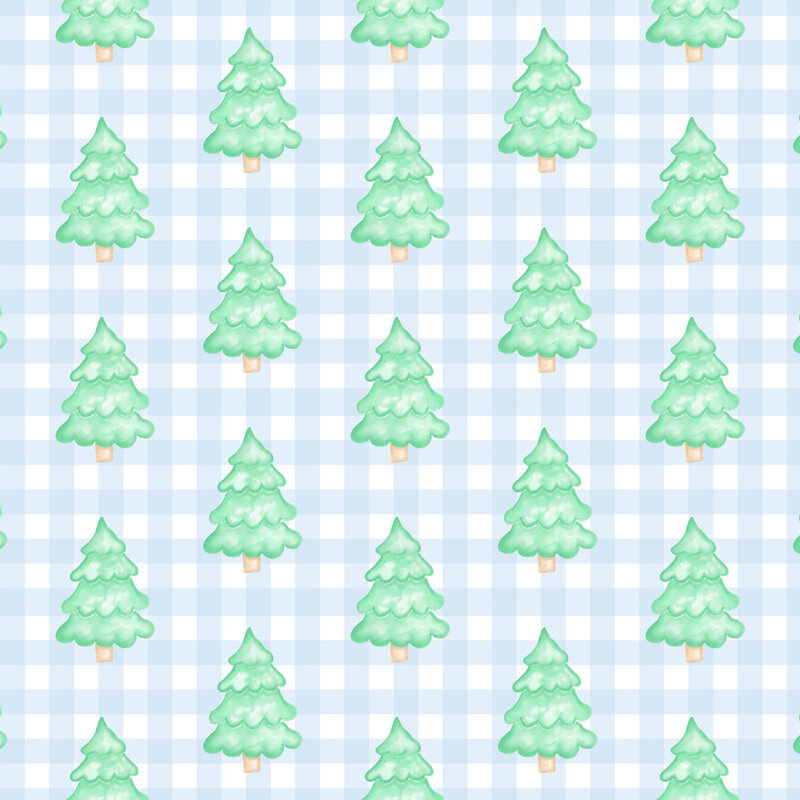JAMES & LOTTIE BLUE GINGHAM CHRISTMAS TREE TWO PIECE JAMMIES