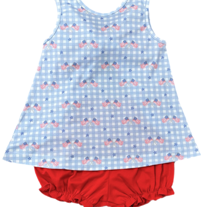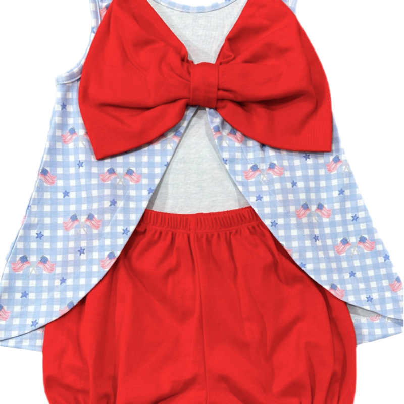 *PRE-ORDER* JAMES & LOTTIE BOW LOTTIE BLOOMER SET - PATRIOTIC GINGHAM