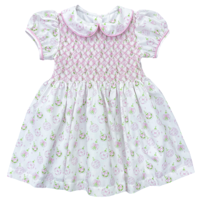 JAMES & LOTTIE PINK ORNAMENTS EVERLY SMOCKED DRESS