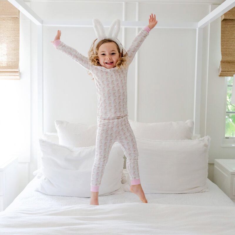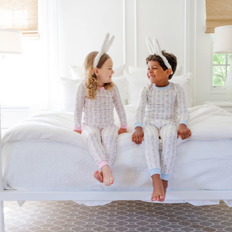 LILA + HAYES GRAYSON PAJAMA SET - EASTER BUNNIES PINK