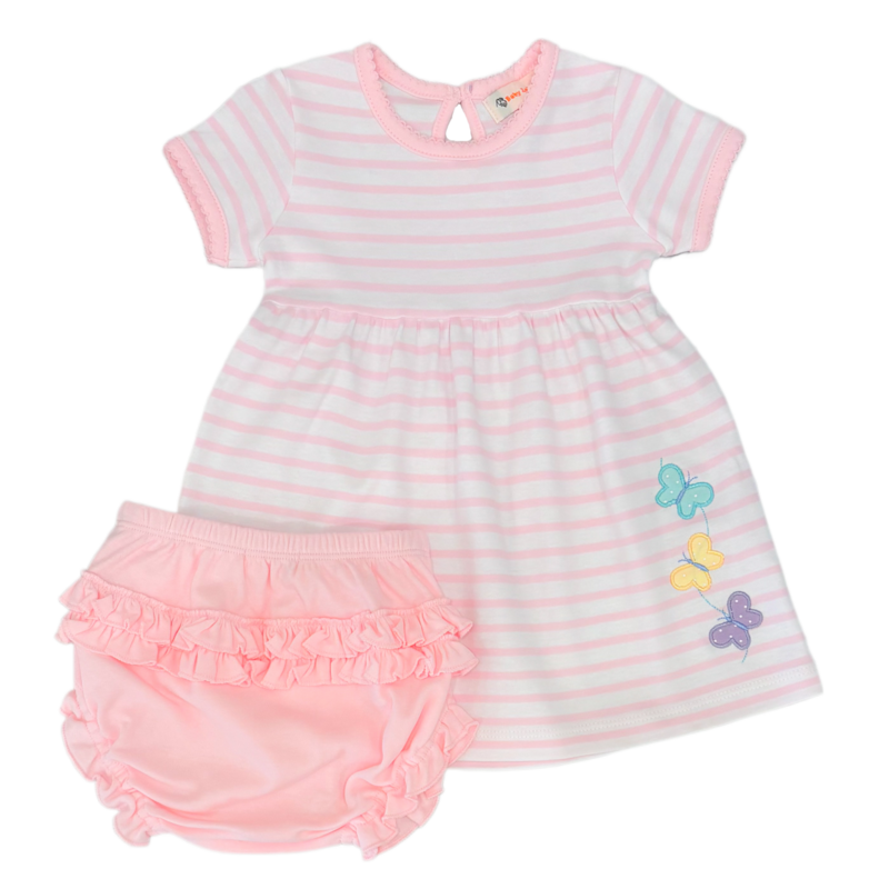 LUIGI BUTTERFLIES STRIPE DRESS W/ RUFFLE BLOOMERS
