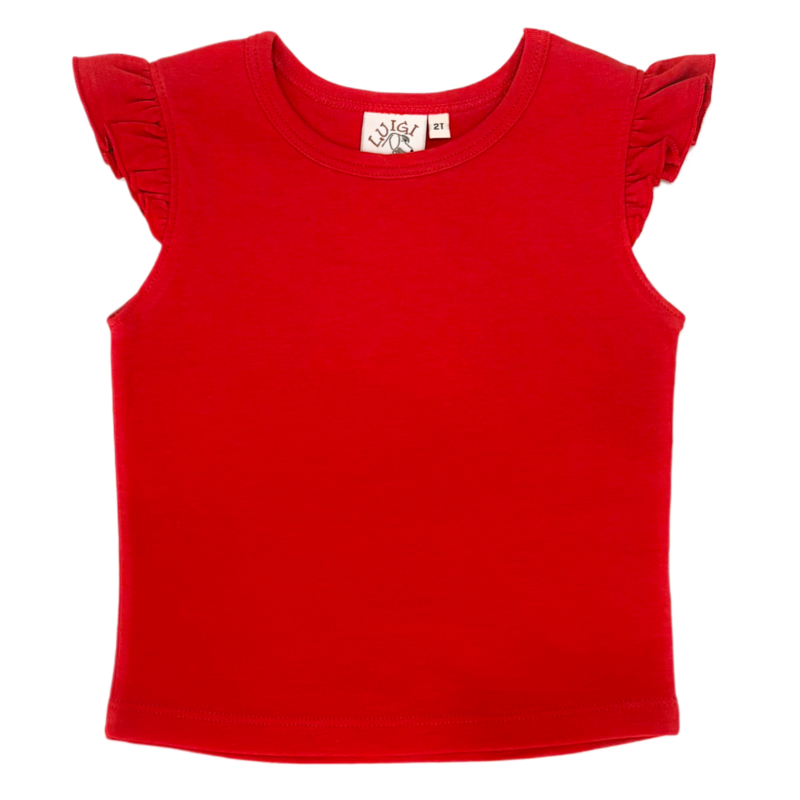 LUIGI DEEP RED FLUTTER SLEEVE TOP