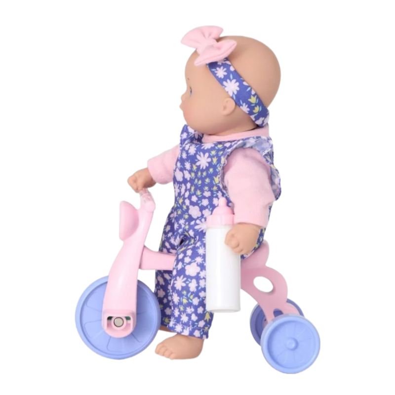 These 8-inch pals are perfect for any adventure, fitting easily in your pocket or backpack. Trike Playset comes with her very own Tricycle to ride. Dressed in a purple overall with pink starbursts and a matching headband.
