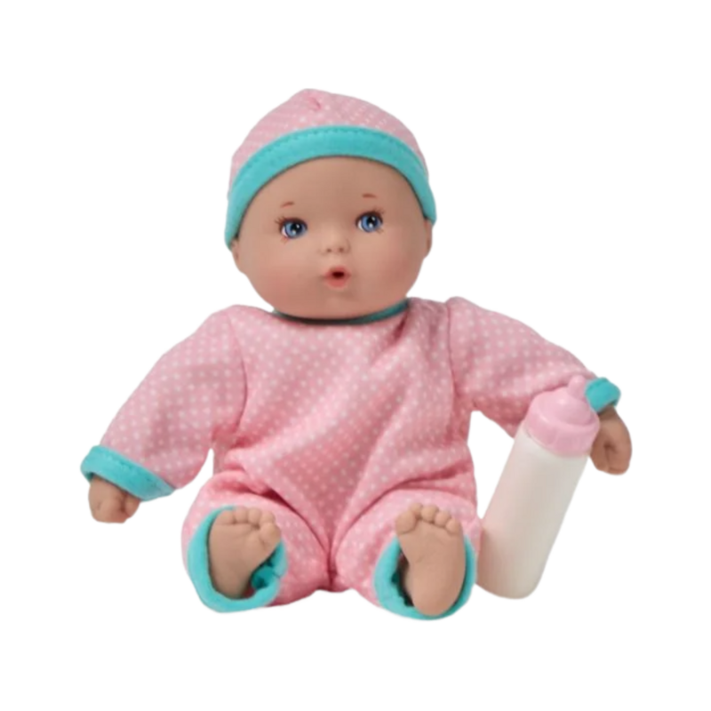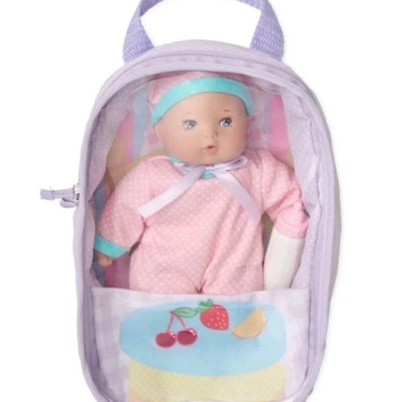 These little cuties come with their very own tote for packing in playtime on the go! Soft bodied and classically dressed, she is the perfect companion. Bottle included with each doll.