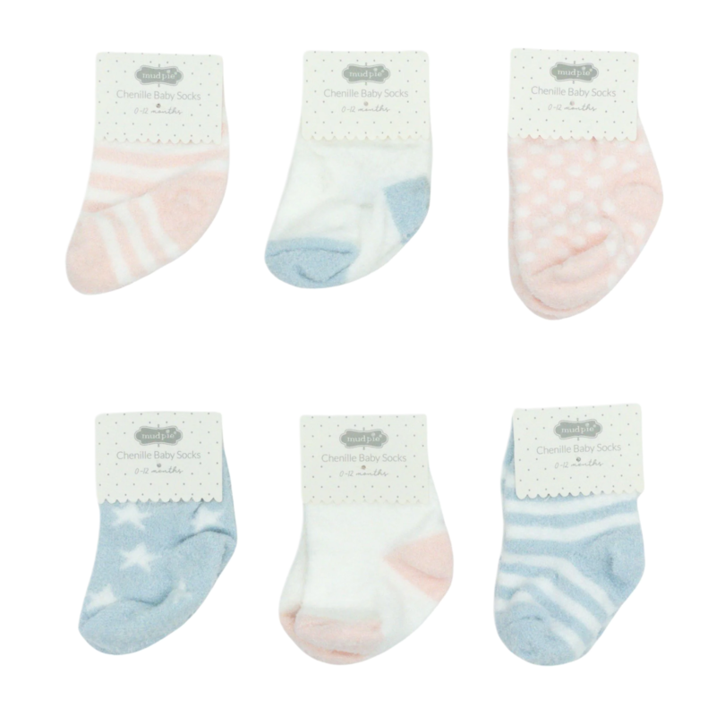 The Baby Chenille Socks are made from the softest materials, insuring your baby is cozy and comfortable! 95% Nylon, 5% Spandex