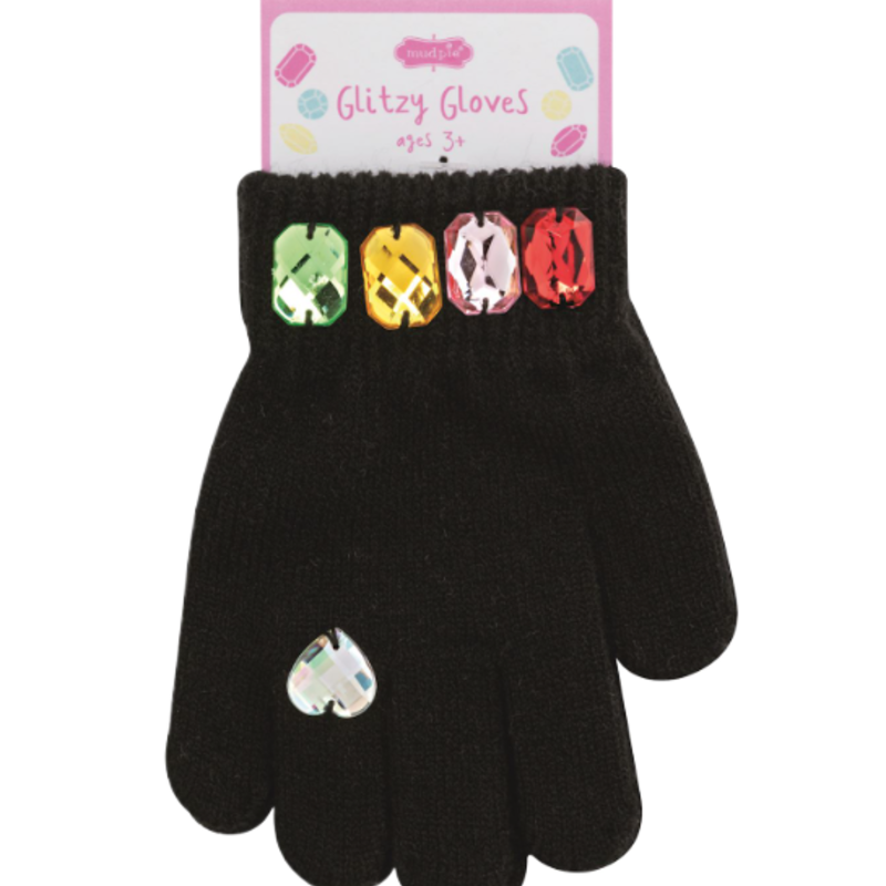 Sweater knit glove with rhinestones at wrist cuffs and ring finger. Ages 3+