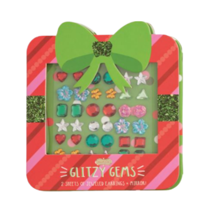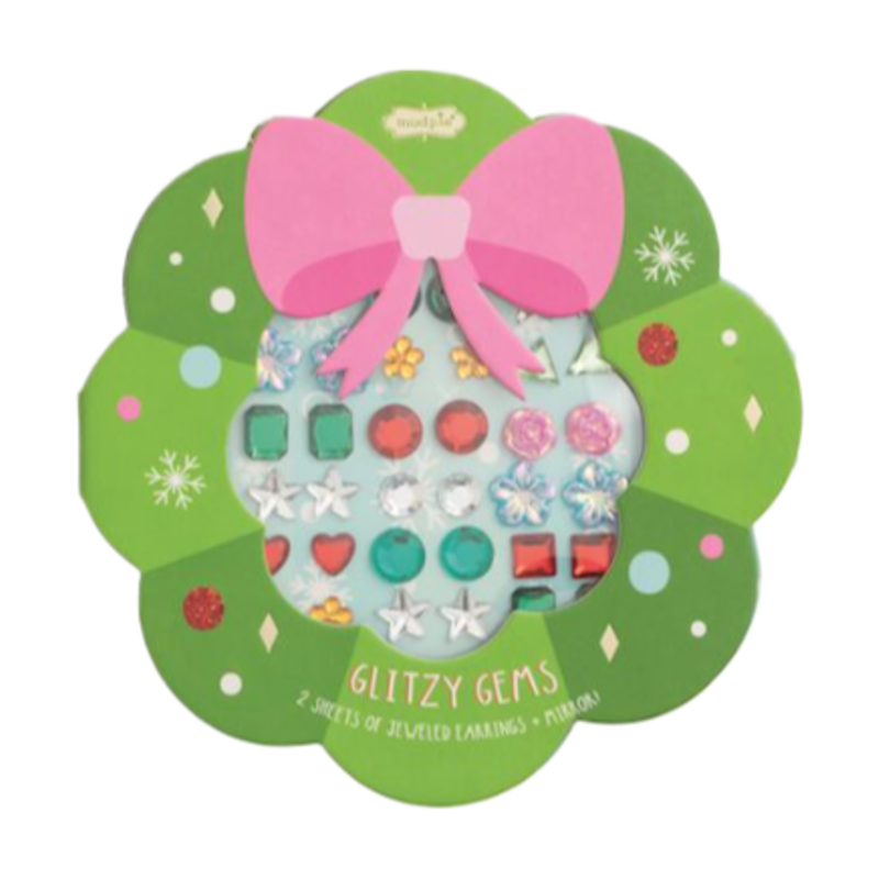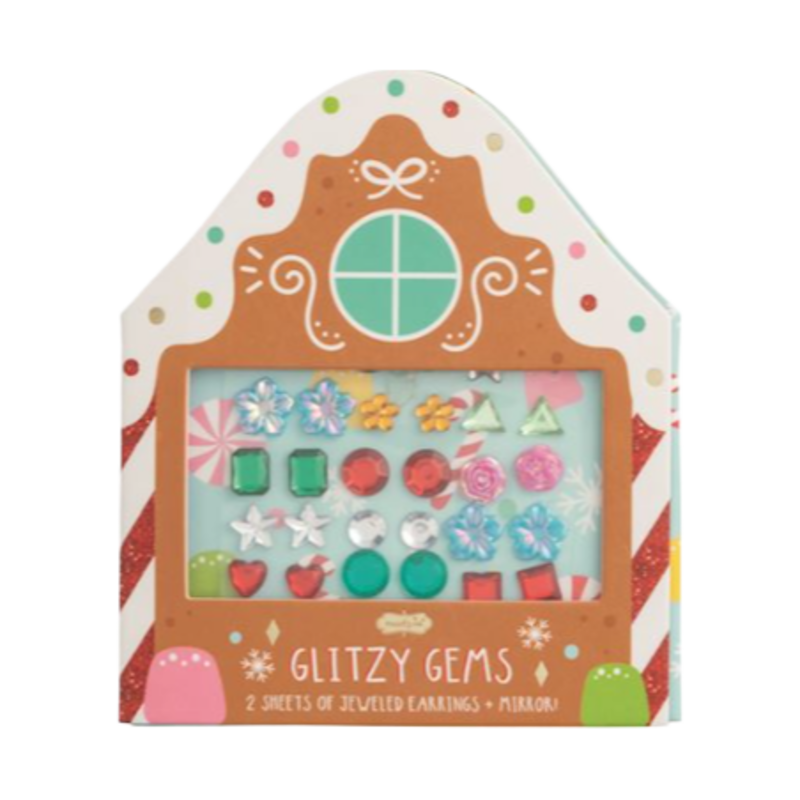 Two sheets of stick-on jewel earrings come in a folded display card with vinyl mirror. Ages 3+.