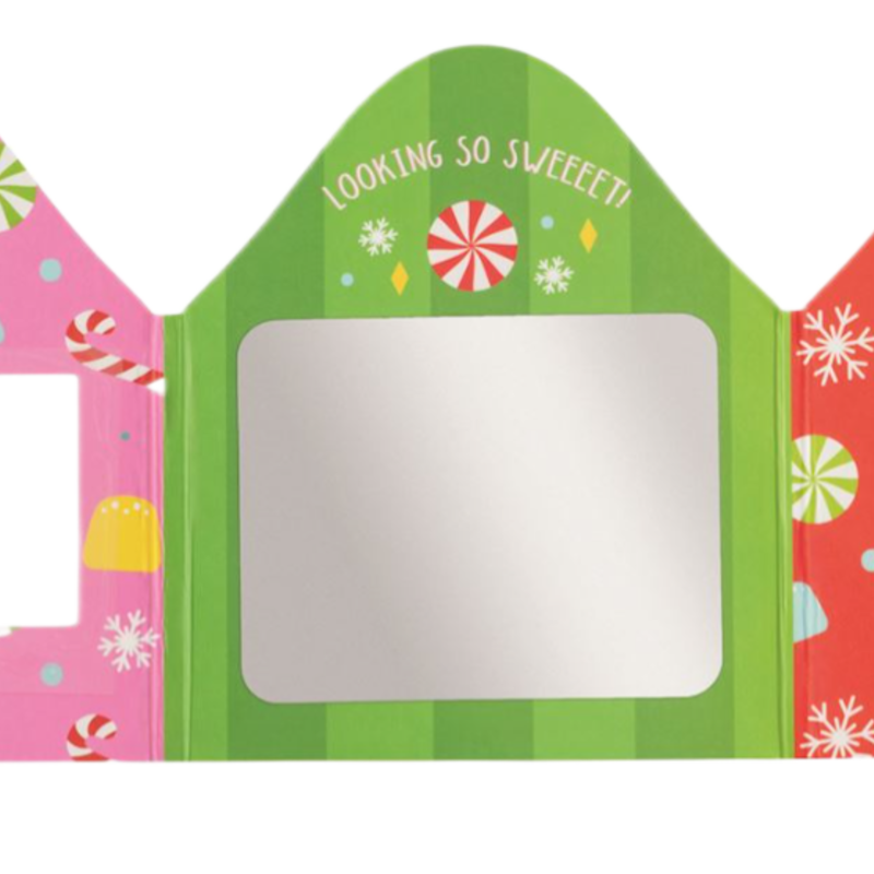 Two sheets of stick-on jewel earrings come in tri-fold display card with vinyl mirror. Ages 3+