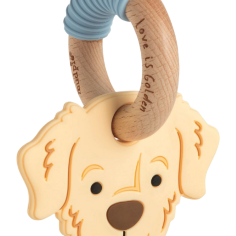 Natural beechwood and BPA free silicone teething ring. Ages up to 18M.