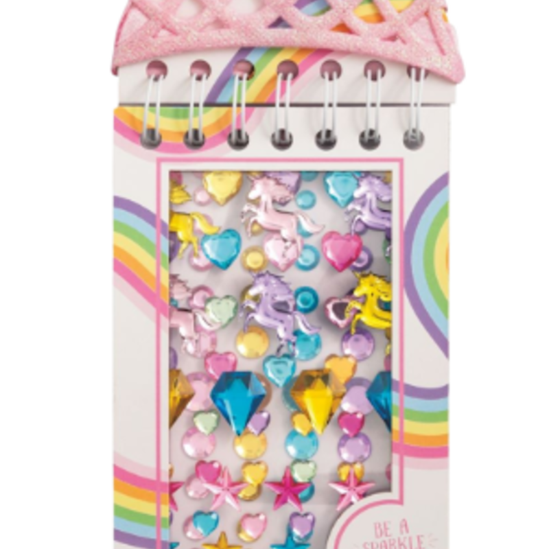 Dress-up rhinestone sticker sheets come with stretchy crown. Sticky gems may also be used as face jewels. Ages 3+.
