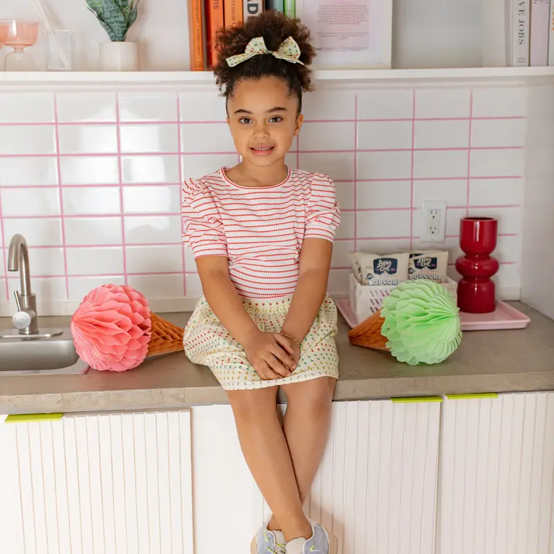 Nella June Puff Sleeve Tee - Pink Heart Stripe