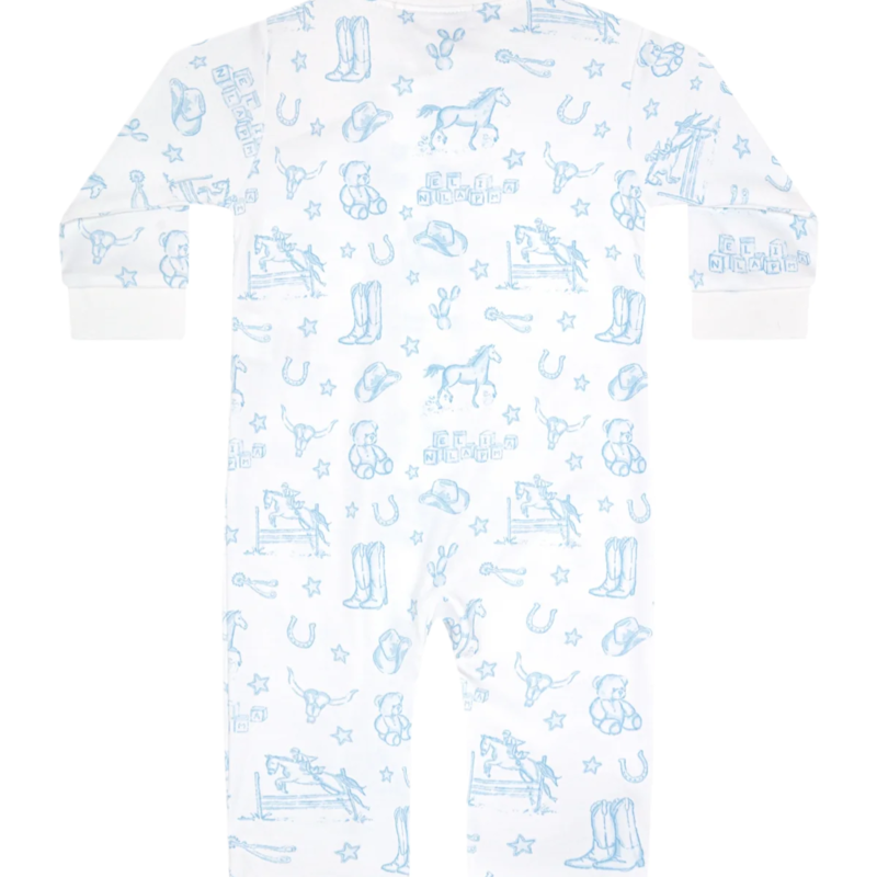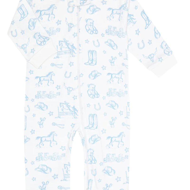 Nella Pima Blue Lone Star Toile Zipper Footie