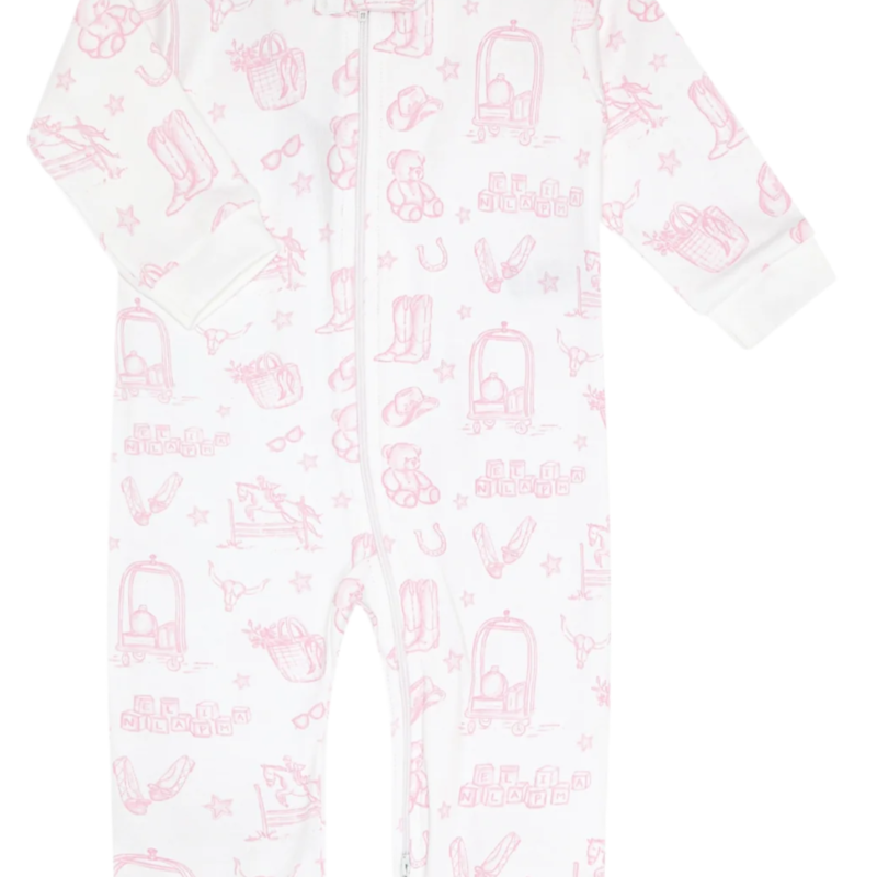 Nella Pima Pink Lone Star Toile Zipper Footie