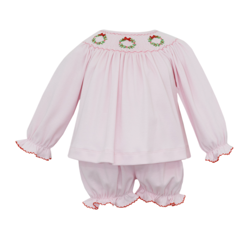 PETIT BEBE CHRISTMAS WREATH BISHOP BLOOMER SET