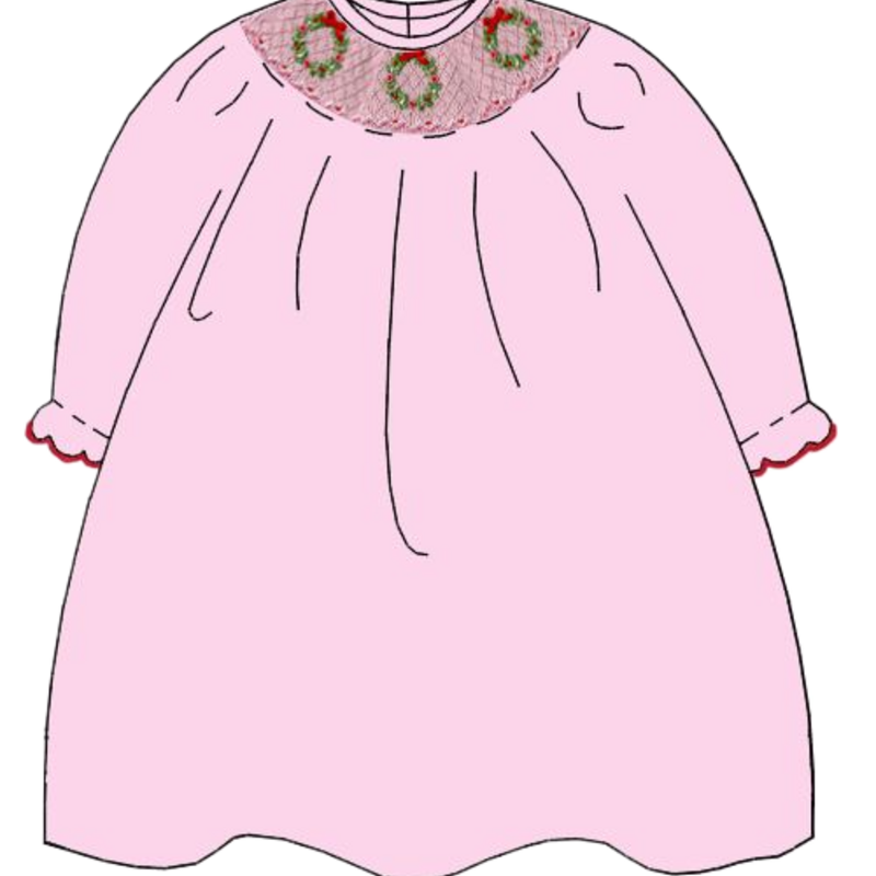PETIT BEBE CHRISTMAS WREATH BISHOP DRESS