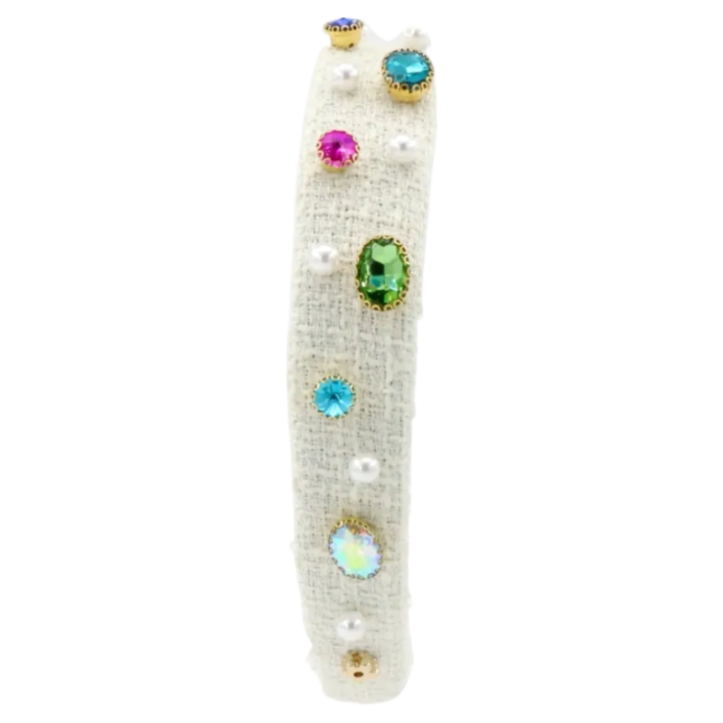 POPPYLAND IVORY TWEED BEJEWELED HEADBAND