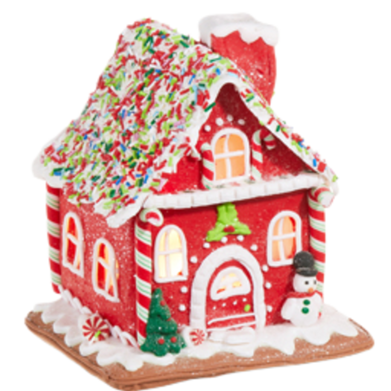 -Made of Clay Dough -Lighted Gingerbread House -Requires 3 AA Batteries