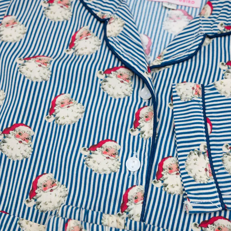 SMOCKINGBIRD NAVY STRIPED VINTAGE SANTA BUTTON DOWN PAJAMA SET