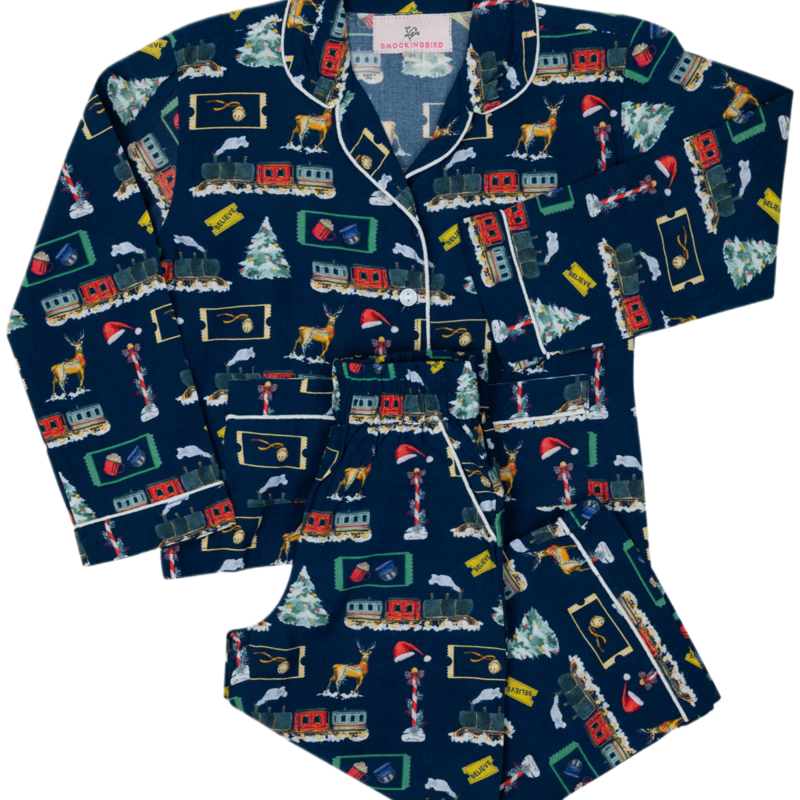 SMOCKINGBIRD POLAR EXPRESS BUTTON DOWN PAJAMA SET