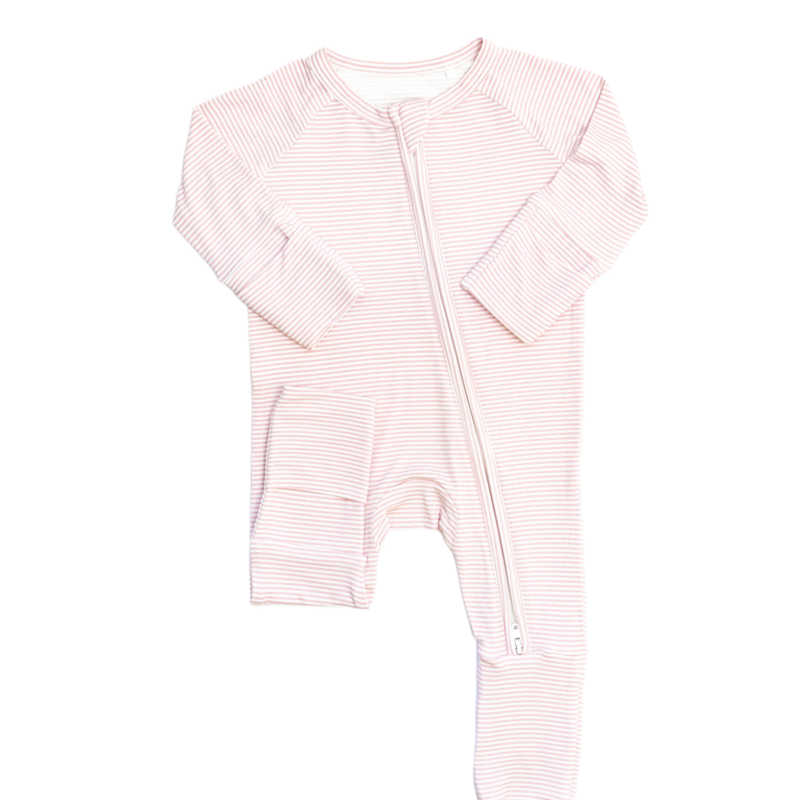 THE UPTOWN BABY PINK MINI STRIPES ZIPPER ROMPER