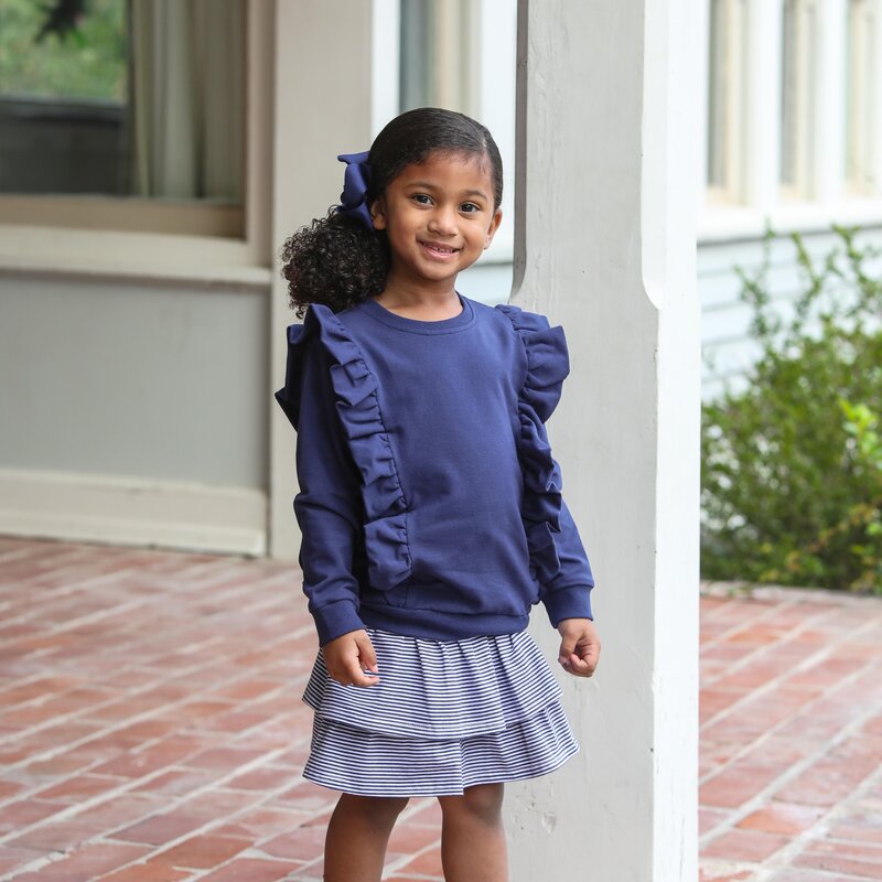 Trotter Street Kids Laura Ruffle Pullover - Navy