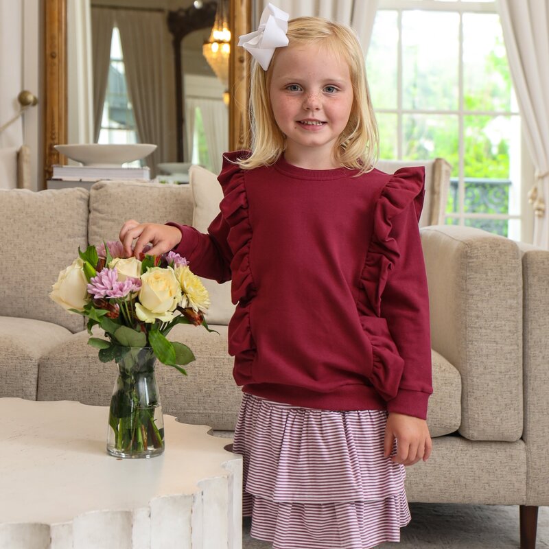 Trotter Street Kids Laura Ruffle Pullover - Cranberry