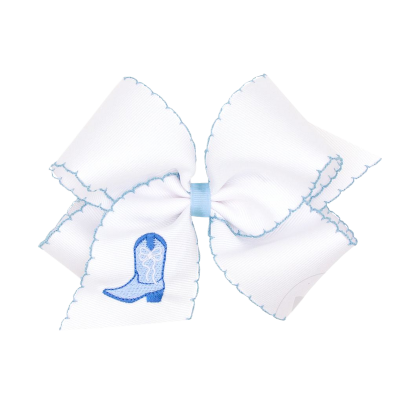 Wee Ones King Blue Boots Emb Moonstitch Bow